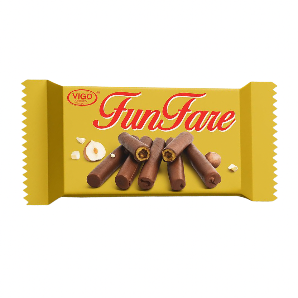 شوكولاتة فانفير بسكويت ويفر رول بحشوه البندق 30 جرام VIGO Fun Fare Wafer Roll