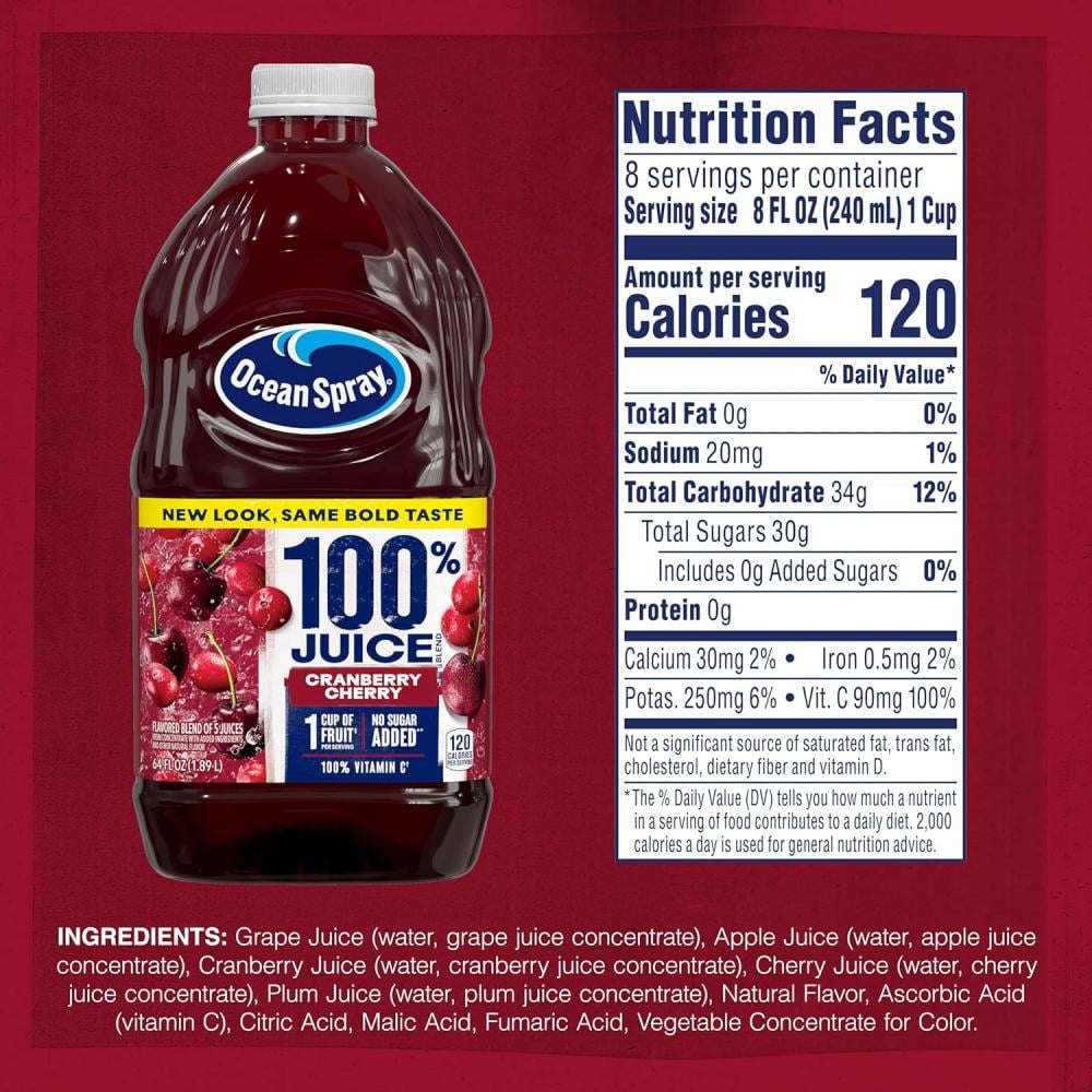 عصير اوشن سبراي 100٪ مزيج عصير التوت البري والكرز 1.89 لتر امريكي